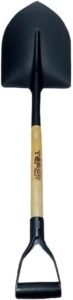 Te recomendamos esta pala para las actividades que necesiten más movimiento de tierra o para cargar la carretilla, es de punta Redonda, Mango de Madera, Agarre Metálico, Acero, Resistente, sus medidas son: Punta de 34,5 x 27,5 cm, Mango de 67 cm.